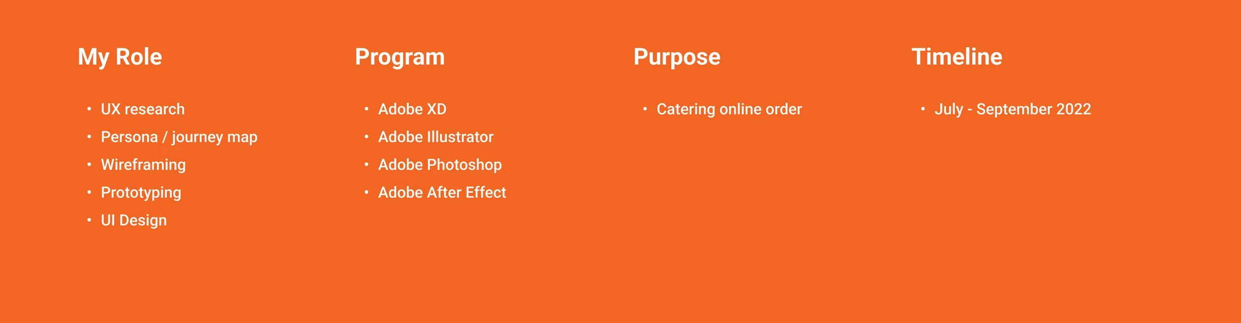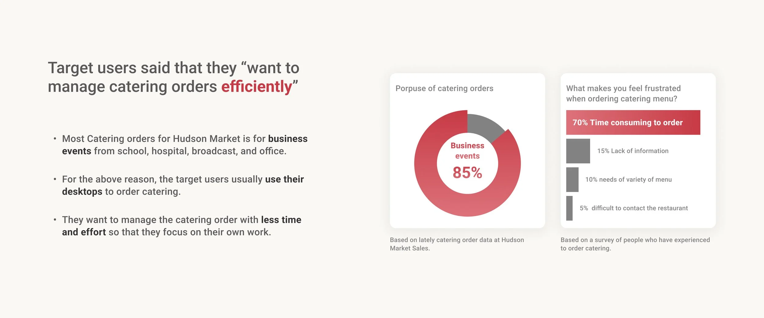 First, I wanted to empathize with users and their experience through the research. I conducted the survey for quantitative research with people who have experience with catering or large size orders. In terms of catering service, most people need it for business events at work.